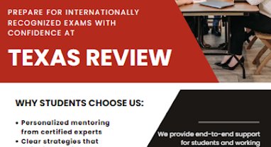 Texas Review is a leading overseas education specialist in Rajouri Garden, Delhi, dedicated to helping students unlock global opportunities. We offer comprehensive online and classroom training for top international exams, including IELTS, TOEFL, GRE, GMAT, SAT, PTE, and Duolingo. Our skilled trainers, customized coaching methods, and strategic approach ensure students achieve their best possible scores. Beyond test preparation, we offer comprehensive study abroad consulting, guiding students through the university selection process, application procedures, and visa guidance for destinations such as the USA, Australia, Canada, UK, Germany, Ireland, and more, along with immigration support.